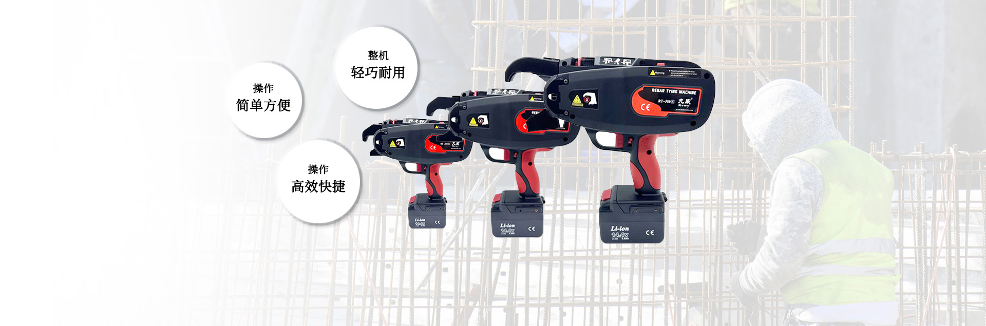 寧海三元電動(dòng)工具有限公司創(chuàng)建于2003年,地處寧波寧海躍龍街道雪坡開(kāi)發(fā)區(qū)。公司主要產(chǎn)品有全自動(dòng)鋼筋捆扎機(jī)等一系列產(chǎn)品、繞線機(jī)、線盤(pán)配件等。14.4V的RT280S/RT450S/RT580S。屏幕顯示、電磁剎車18.5V5A的RT528/RT545/RT558。2023年推出新款:RT-441和RT-650速度更快0.6秒打一個(gè)結(jié)、用絲更短,僅需用1.0MM2根的10-35CM鐵絲,且綁扎的更牢固。